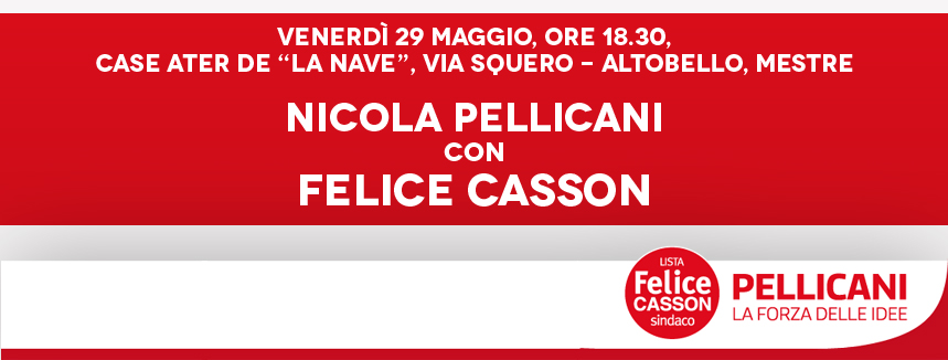 Domani torno alle case ATER de “la Nave” di Altobello. Sarò col candidato Felice Casson, per incontrare i cittadini. Appuntamento alle 18.30, vi aspetto.
